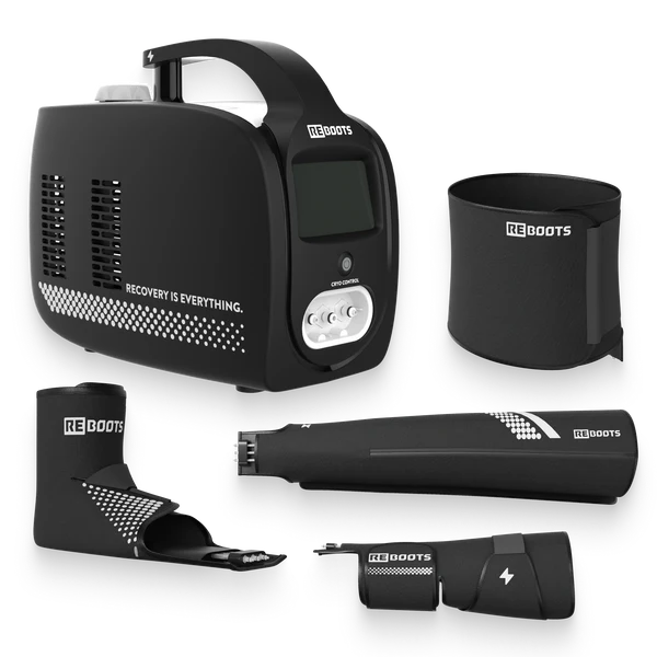 Dzięki funkcji automatycznego chłodzenia urządzenia Cryo Pro nie potrzebujesz już lodu. Włączasz aparat, ustawiasz temperaturę 5–15°C, wybierasz jeden z 4 dołączonych mankietów (na kolano, nogę, biodro lub całą kończynę) i korzystasz z precyzyjnego chłodzenia wspierającego regenerację mięśni, redukcję opuchlizny i szybszy powrót do formy po treningu!